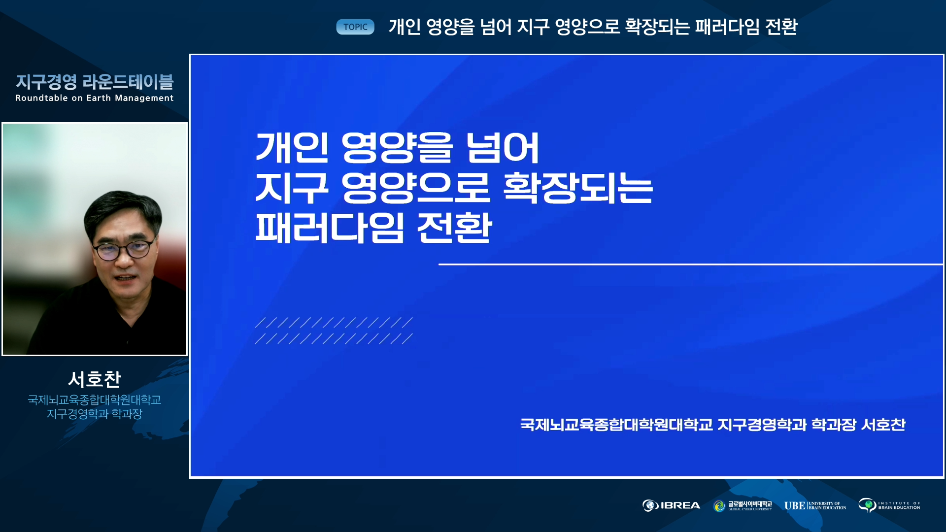 이정한 IBE 지구경영대학원 원장은 “뇌교육이 개인적 차원의 선택과 결정이라면, 지구경영은 조직적·국가적 차원에서의 전체적인 선택과 결정에 관한 학문”이라며 “사람의 변화는 뇌의 변화이며, 지구경영을 학문화하고자 하는 시도가 국제사회에 큰 발전을 가져다줄 것”이라고 밝혔습니다.